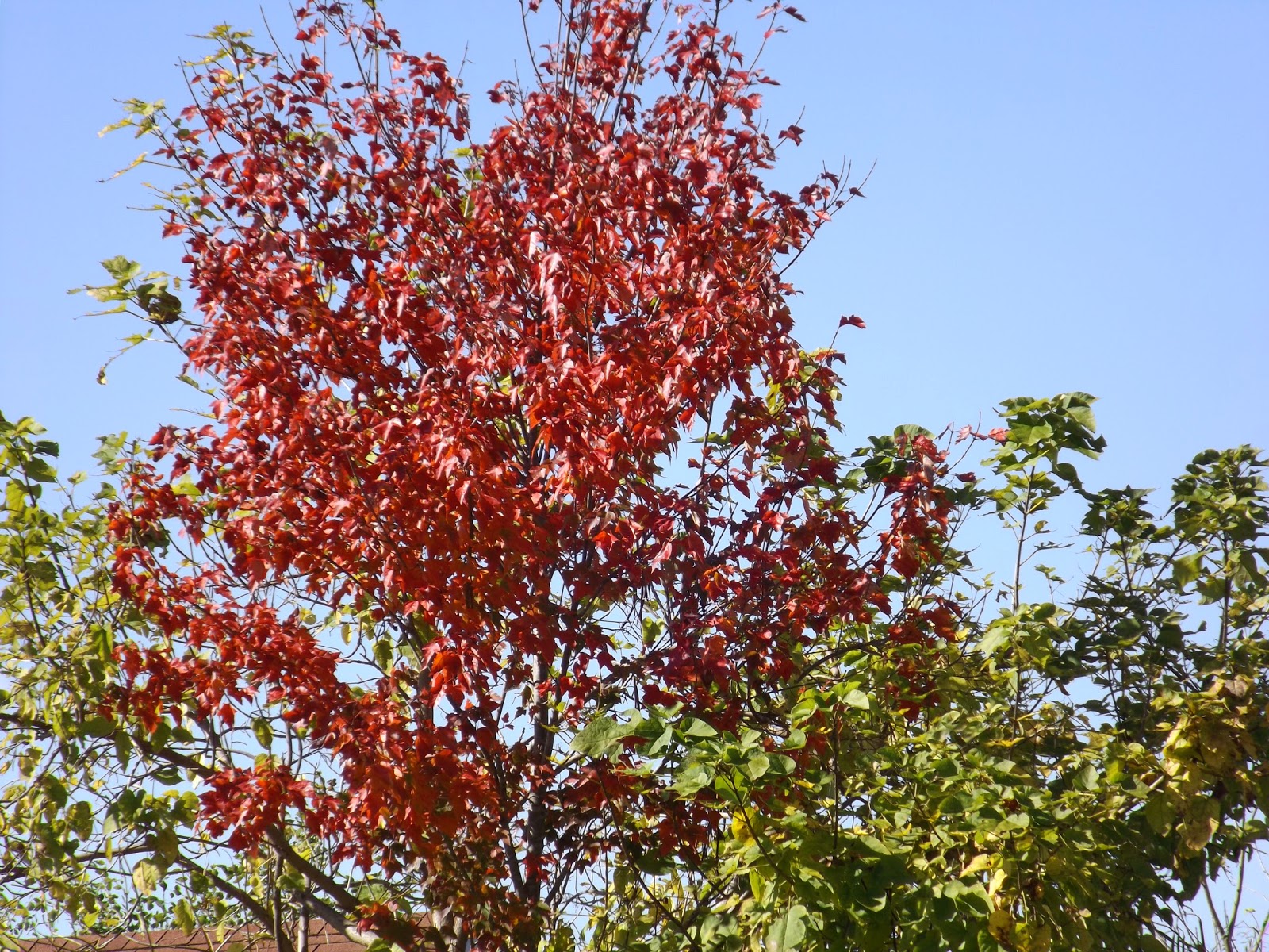 I loved the green of the Austrian Pine, the yellow of the Althea, and the red of the Burning Bush! |